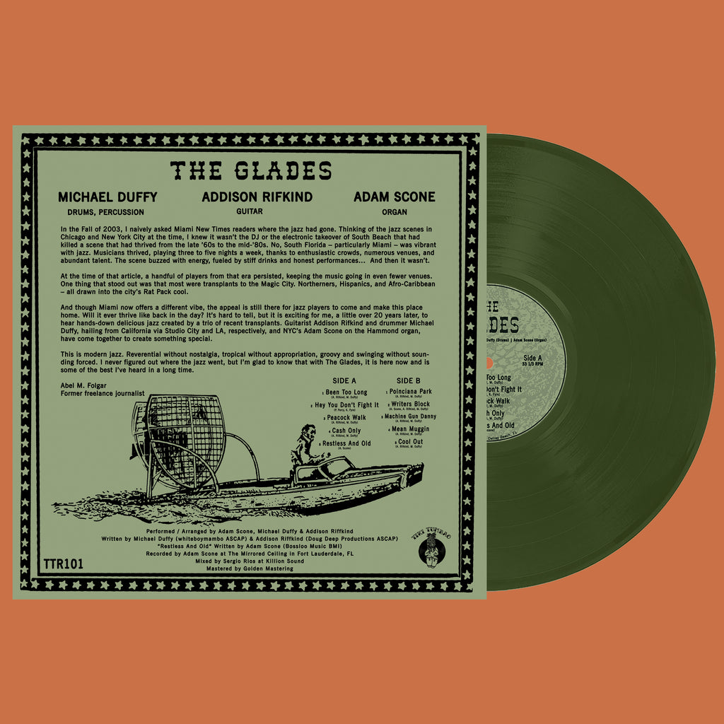 The Glades is a Soul Jazz Organ Trio consisting of Guitarist Addison Rifkind, Organist Adam Scone, and Michael Duffy on Drums and Percussion.